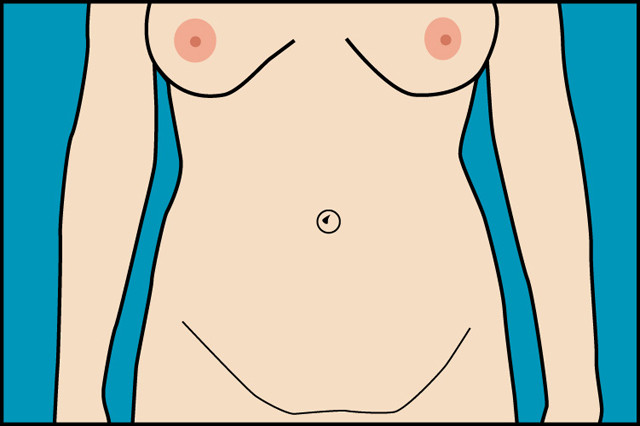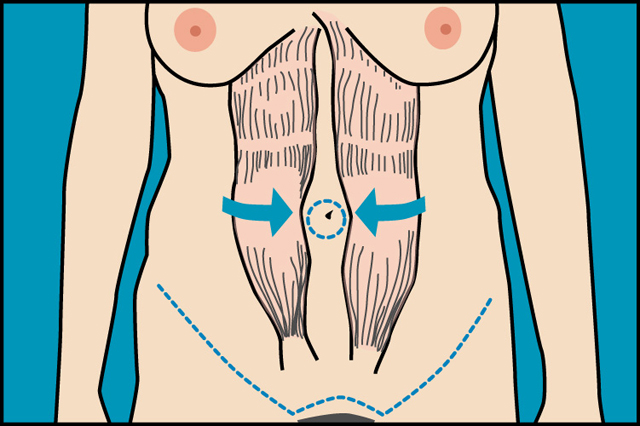 La cirugía se realiza bajo anestesia general y ususalmente quedan internados por una noche. Se utiliza una incisión horizontal justo arriba de la zona del pubis, el largo de esta incisión varía de acuerdo a las necesidades de cada paciente. La cicatriz es permanente pero la misma se coloca de forma tal que quede oculta por la ropa interior, usualmente esta cicatriz mejora con el tiempo. Una segunda cicatriz alrededor del ombligo puede utilizarse para reposicionar el mismo.